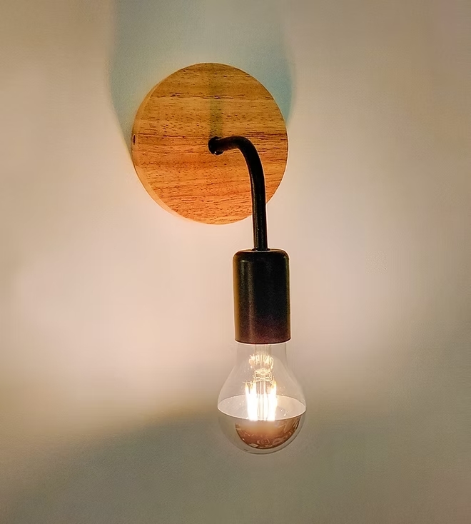 Arandela Base De Madeira Com Braço Preto E27 Clint