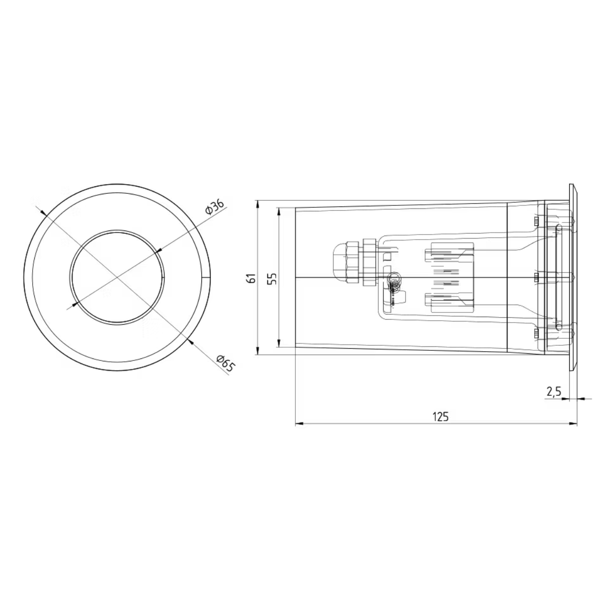 Corpo de alumínio com aro inox, ideal para uso externo e interno