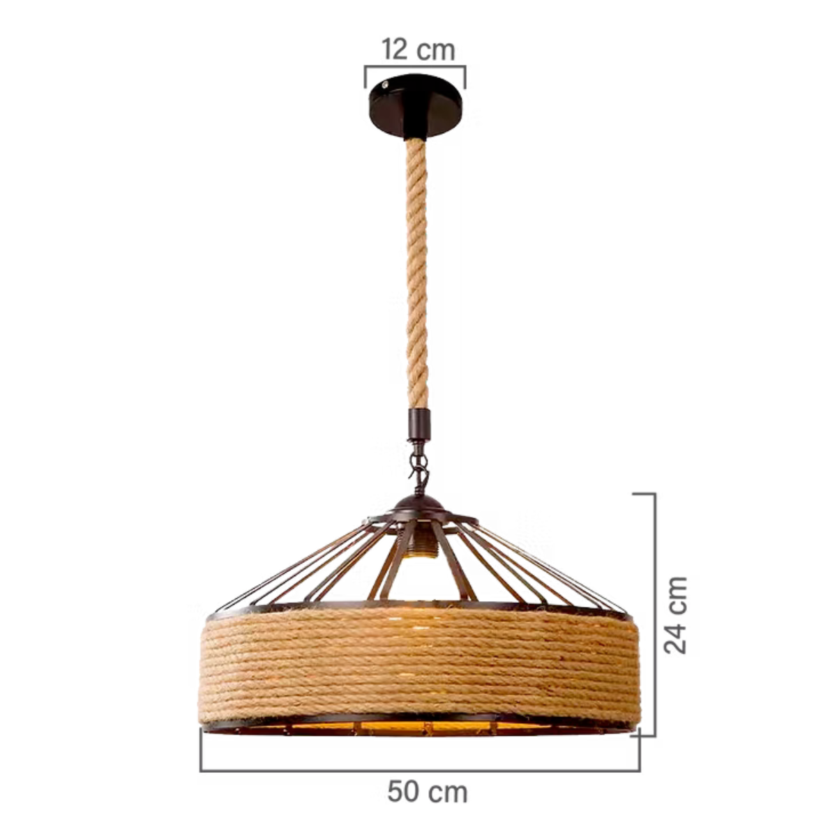 Seu design une corda natural e estrutura em metal, criando um visual rústico sofisticado que valoriza ambientes residenciais e comerciais.